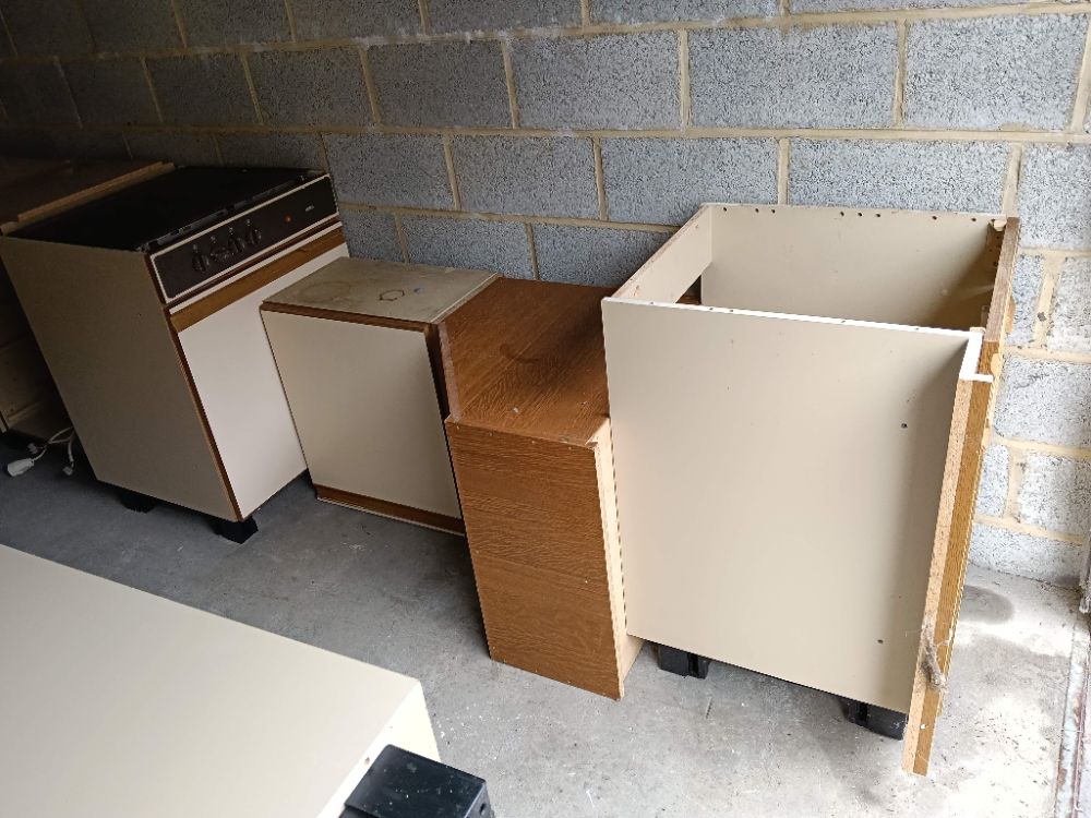 Meubles de cuisine et une taque électrique vitrocéramique. Meubles ayant été utilisés mais restant présentables.